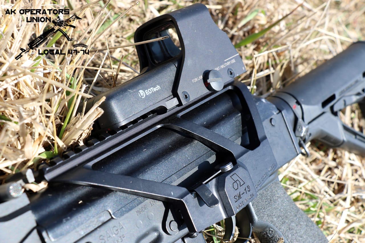 After the successful fulfillment of a military requirement, Arsenal, Inc. has released the SM-13 to the commercial US market. This side-attaching scope mount for the AK variant rifles was born to meet and exceed the toughest objectives put in front of Arsenal, Inc. The one-piece CNC precision machined SM-13 is manufactured from aircraft grade aluminum alloy and weight of is 5.76 oz (163 grams). Rail mounting surface is 7.5″ long (19.5 cm) and offers plenty of room to mount optics on it. The SM-13 utilizes the time-proven steel adjustable locking mechanism that allows instantaneous attachment and release of the scope mount without any compromise to the accuracy and loss of zero. We have tested SM-13 extensively in field for past 30 days and I’m happy to report, that Arsenal mount performed very well during these tests. It survived multiple “push ups”, drop tests and etc. At no point, “zero” was compromised. SM-13 is well made and solid product, which should satisfy needs of AK users, looking for rigid mounting system which utilizes standard AK side rail.